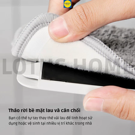 Bề mặt lau kích thước 37x12cm đảm bảo làm sạch nhanh chóng và hiệu quả trên nhiều loại sàn. Đặc biệt, khăn lau có thể tháo rời và giặt máy với nước không quá 40°C, tiết kiệm thời gian và công sức bảo dưỡng.